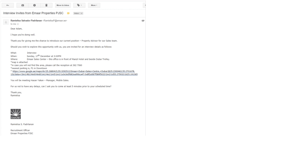 This email is from Emaar. Emaar is one of the world's most valuable and admired real estate developers. They by far are the best and the biggest real estate developer in Dubai and the UAE, and they are the people behind many, many projects in Dubai such as the BurjKhalifa and the Dubai Mall Fountains.